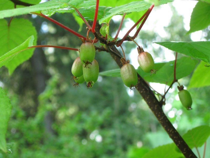 Саженцы Актинидии Коломикта Земляничная дарят своим владельцам овальные гладкие плоды с зеленой окраской и приятными земляничными нотками.