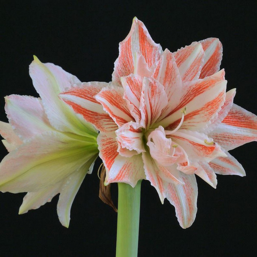 Амариллис махровый Дэнсинг Квин - это великолепное растение, которое поразит вас своей красотой и изысканностью. Его стебель высотой от 50 до 70 см украшен махровыми цветками бело-красного оттенка, создавая неповторимый вид. Листья амариллиса имеют элегантную форму и придают растению особый шарм.