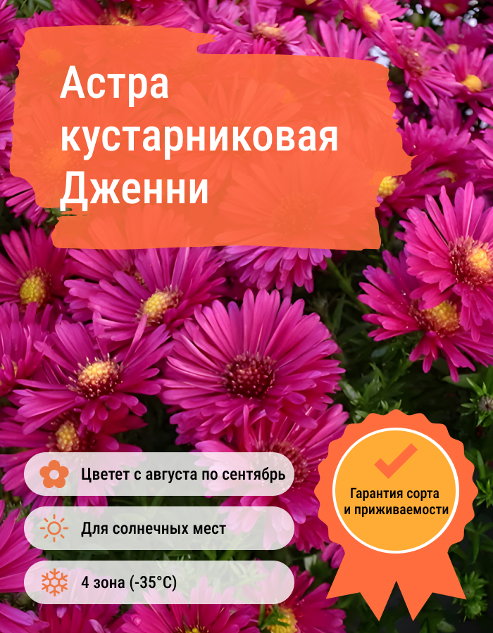 Рассада астры Джени (Jenny) – этот невысокий ветвящийся кустик украсит своими цветами любой приусадебный участок, клумбу, цветник или пустующий участок сада. Благодаря достаточно сильно ветвящимся побегам взрослый кустик растения приобретает почти шаровидную форму. Цветение продолжительное, ярко-красными цветами среднего размера. К грунтам астра Джени неприхотлива, хорошо чувствует себя даже на достаточно сухом песчаном участке. Морозостойкость этого многолетника достаточна для того, чтобы он не нуждался в укрытии на зиму. Вредителями и болезнями поражается редко.