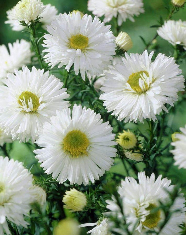 Рассада астры Маджик вайт (Magic White) широко используется в декоративном цветоводстве как неприхотливое и простое в уходе, н вместе с тем и очень декоративное растение. Образует сравнительно небольших размеров сильно ветвящийся кустик, который у взрослого растения имеет почти шаровидную форму. Цветы некрупные, белоснежные, махровые, цветение очень обильное и продолжительное. Растение отличается высокой зимостойкостью, а значит не нуждается в укрытии на зиму. Устойчивость астры к вредителям и всевозможным болезням только добавляет растению популярности у начинающих садоводов.
