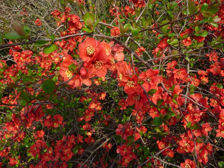 Саженцы айвы (хеномелес) превосходной Кримсон энд Голд (Crimson and Gold) образуют невысокий куст с густой раскидистой кроной. В мае кустарник обильно покрывается темно-красными цветками с яркими желтыми тычинками, при этом блестящая зеленая листва появляется чуть позже.