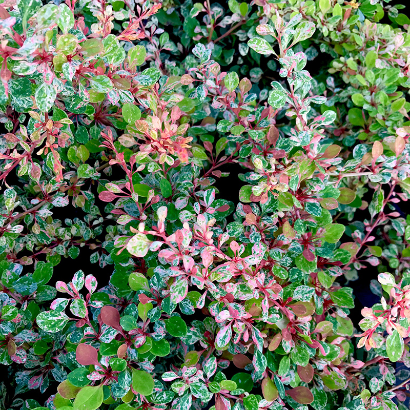 Саженцы кустарника барбариса Наташа (Natasza) – считаются лучшим сортом барбариса с пестрой окраской. Главная отличительная черта – листья бело-розово-зеленого оттенка и плоды насыщенного розово-красного цвета. По сравнению с другими сортами окрас растения сохраняется до конца момента вегетации. Кустарник хорошо будет расти на любой почве, особых требований нет, хорошо переносит палящее солнце, заморозки и характерные заболевания. Сорт Наташа часто используется для формирования ярких ландшафтных композиций или для групповых посадок. Саженцы дополняют городские парки или участки вблизи усадеб. Единственное, что может губительно сказаться на состоянии растения – это застой влаги в грунте. Сажать кустарник нужно на освещенном участке.