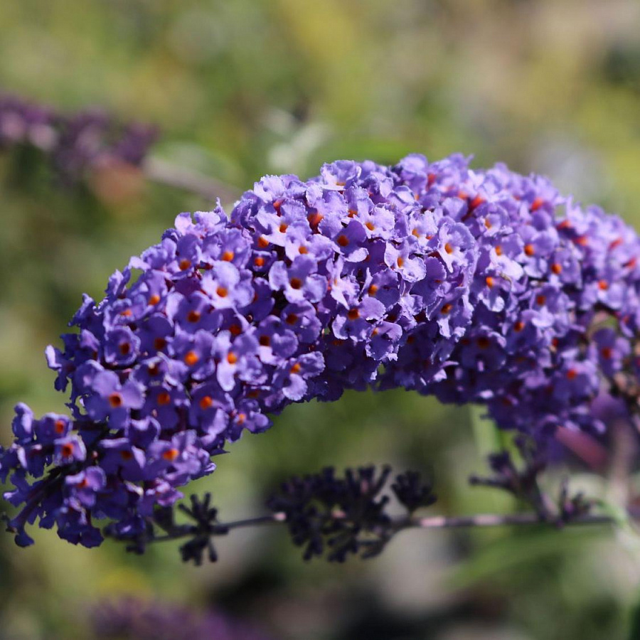 Саженцы буддлеи Давида Эмпайр Блю (Buddleja Davidii) относятся к декоративным высокорослым кустарникам. Растение подходит для одиночных посадок и групповых вместе с другими кустарниками. Используется для озеленения участка, создания живых изгородей и оформления бордюров. Буддлея предпочитает расти на влагоемких почвах. Зимой побеги могут замерзать, поэтому кусту требуется укрытие. Высота кустарника 1,5-2,6 метра, ветви раскидистые, поникающего типа. Саженец быстрорастущий. Цветочки диаметром до 1,6 сантиметров, лепестки сиреневого или синего цвета, собраны в длинные колосовидные соцветия.