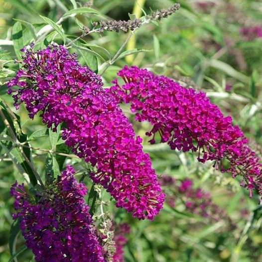 Саженцы Буддлеи (Осенняя сирень) Давида Нано Парпл (Nanho Purple) привлекательны внушительным размером взрослого растения (до 1,7 метра в высоту и до 2 метров в поперечнике) и обильным цветением. Со второй половины и до середины осени на кусте отрастают длинные колосовидные соцветия, длиной до 30 сантиметров, усыпанные мелкими лилово-синими цветочками. Цветущая буддлея ароматна и притягивает взгляд сочным оттенком многочисленных бутонов.