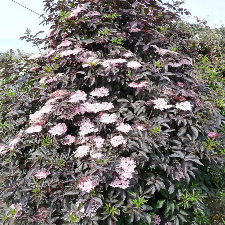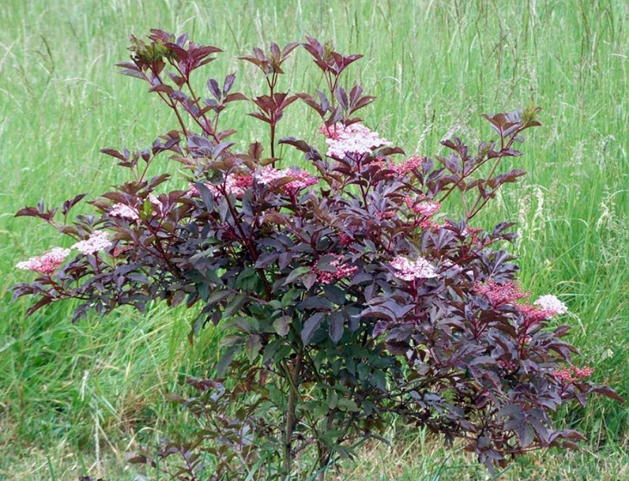Саженцы бузины черной Зандерклауд (Thundercloud) вырастают в красивый кустарник очень быстро. Крупномеры бывают до четырех метров с пышной кроной в форме веера. Листва густая. Внешние особенности: