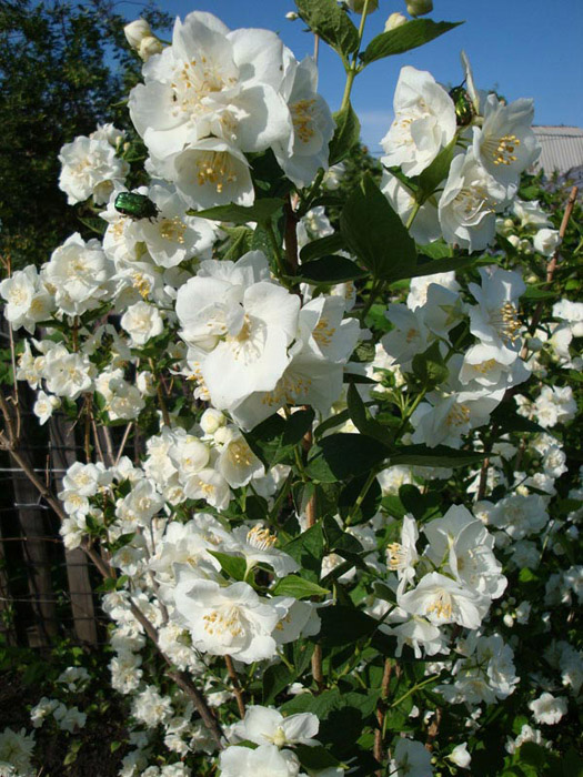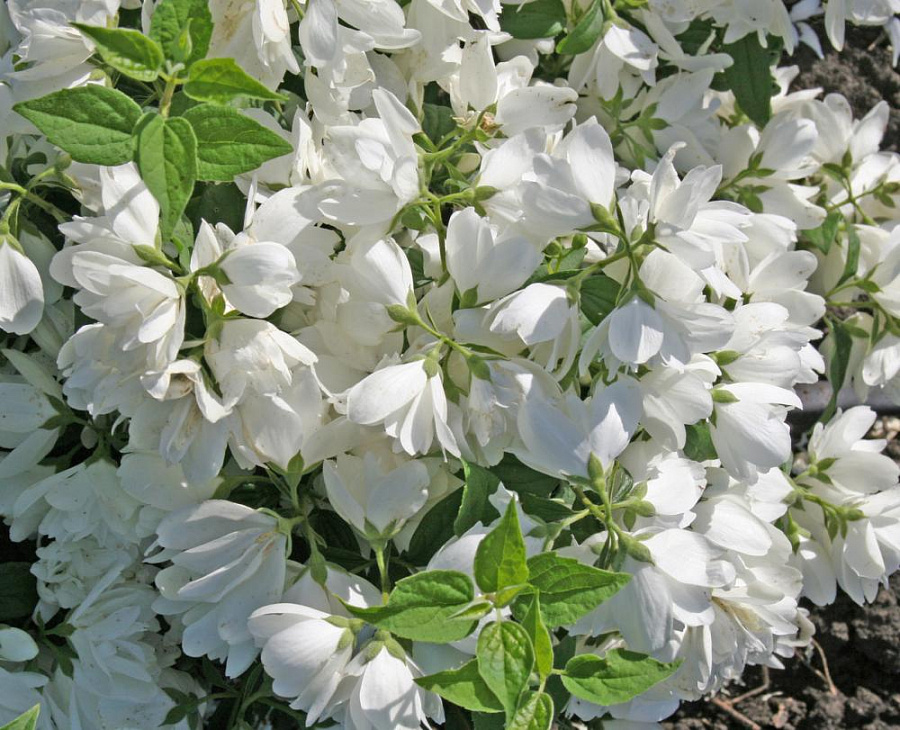 Саженцы чубушника Лемуана сорта Монблан (Mont Blanc) порадуют как опытных, так и начинающих садоводов неприхотливостью и высокими декоративными свойствами. Растение используется для создания древесно-кустарниковых групп и сезонных композиций. Особенности крупномера чубушника Монблан: высота – до 1,8 метров; ширина – от 1,5 до 2 метров; листва – светло-зеленые листья заостренной формы; цветы – белые полумахровые с земляничным ароматом. Саженцы чубушника Монблан устойчивы к заболеваниям и морозам. Чтобы кусты радовали обильным цветением, их необходимо высаживать на солнечных участках.