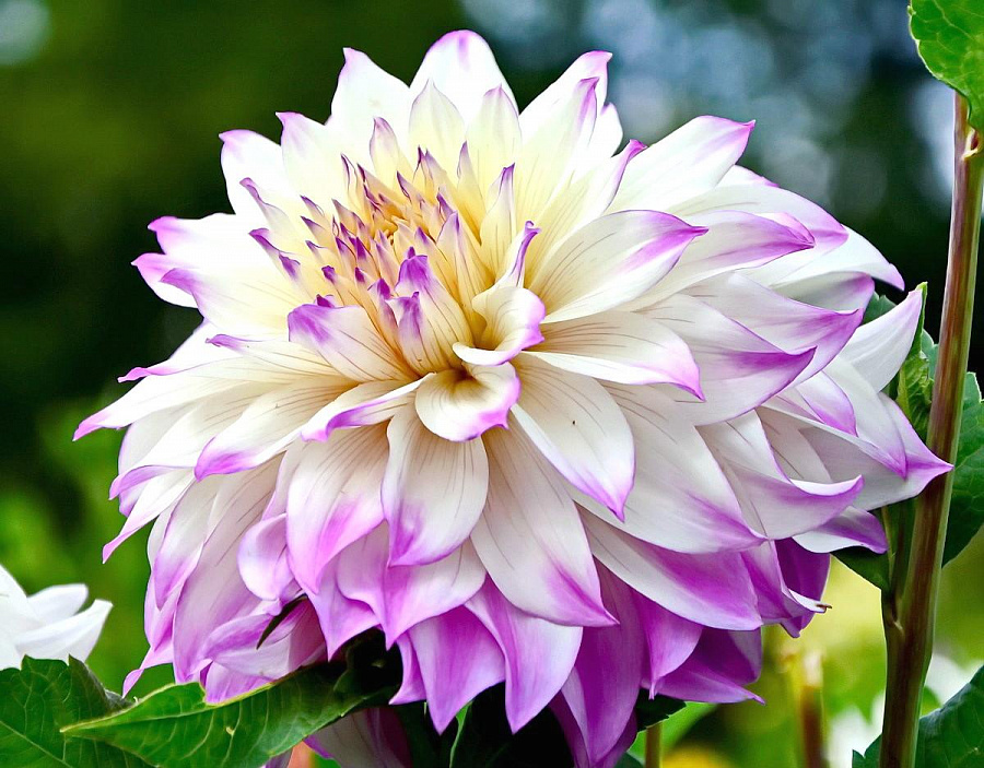 Георгина крупноцветковая Ferncliff Illusion - это великолепное растение с белыми цветками и сиреневыми кончиками, которое поразит ваш взгляд своей изысканной красотой. Ее стебель прочный и устойчивый, а размеры растения позволяют ему вырасти великолепным и внушительным. Листья георгины имеют форму, напоминающую лепестки цветка, что придает растению особый шарм и изящество.