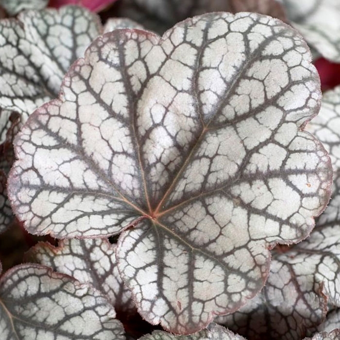 Гейхера гибридная Гардиан Энджел - это волшебное растение, которое поразит вас своей красотой и изяществом. Ее стебельки высотой от 15 до 30 см украшены нежными розовыми цветками на высоких цветоносах. Летом листья гейхеры Гардиан Энджел приобретают темно-бордовый оттенок с серебристым узором, создавая неповторимый вид. Форма листьев разнообразна, а их нижняя часть окрашена в красно-бордовый цвет.