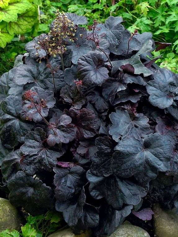 Рассада гейхеры Принц (Prince) завораживает цветом своих листиков, которые имеют насыщенно-красный, пурпурный окрас. Благодаря волнистым краям листвы, куст выглядит пышным. В июле расцветает белыми цветочками, которые контрастно выделяются на фоне листьев. Достоинства: