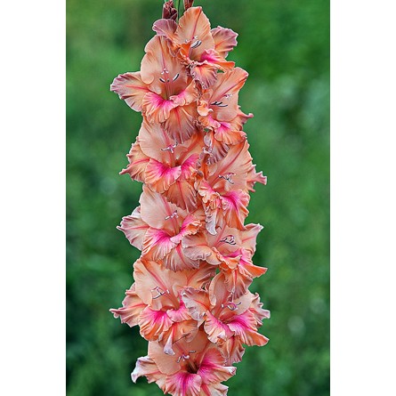 Гладиолус крупноцветковый "Магия Магмы" - это настоящее воплощение огненной страсти и магии в вашем саду. Его стебель прочный и изящный, достигает внушительных размеров, поддерживая крупные цветки белого цвета, словно они пламенеют на фоне зелени листьев. Листья гладиолуса имеют стройную форму, создавая элегантный контраст с яркими цветами.