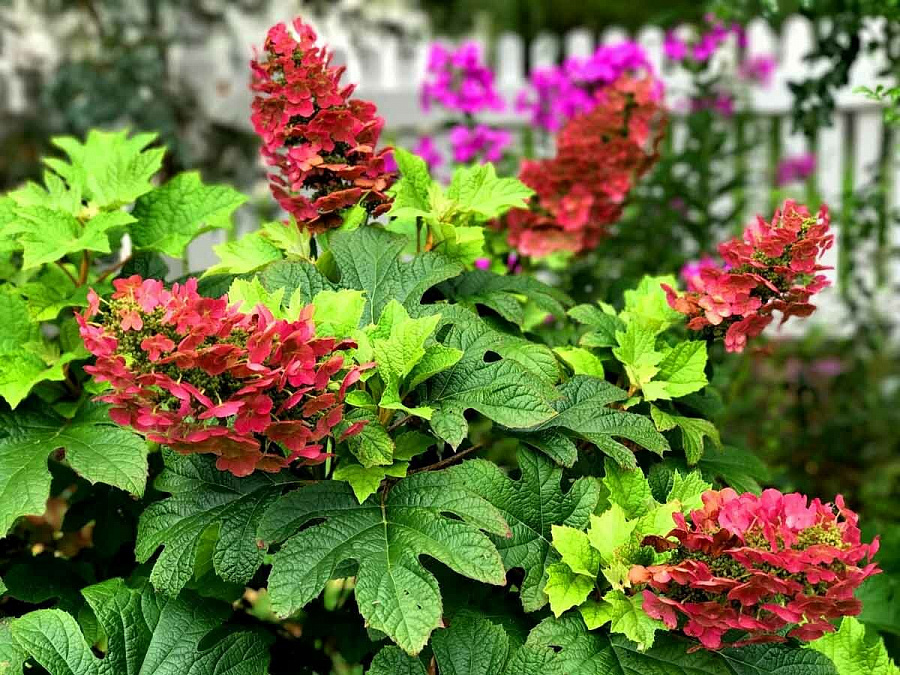 Крупномеры лучше высаживать на легкие плодородные почвы с хорошим увлажнением. Гортензия дуболистная Бургунди отлично смотрится в групповых посадках с другими кустарниками или небольшими деревцами.