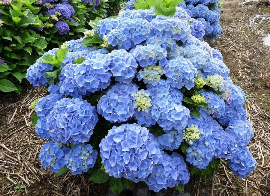 - оттенок цветов зависит от почвы. На кислой – от светло-голубого до насыщенно-синего, а при нейтральной кислотности цветы приобретают розовые тона;