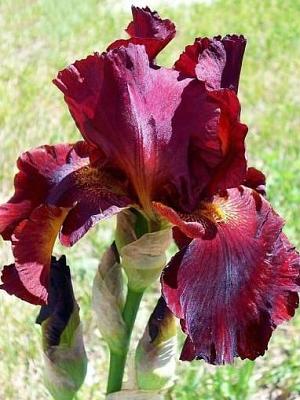 Ирис бородатый "Форт Апач" - это великолепное растение с насыщенно-каштаново-красными цветками, которые привлекают внимание своей красотой и изысканностью. Этот сорт ириса отличается высокими показателями, достигая в высоту до 90 см. Листья имеют интересную форму, что делает растение еще более привлекательным.