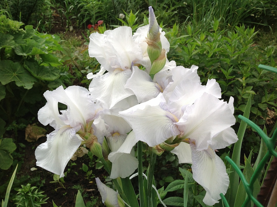 Ирис бородатый инглиш коттедж - это великолепное растение, которое поразит вас своей изысканной красотой. Его стебель достигает высоты до 80 см, а цветки снежно-белого оттенка привлекают взгляды своей нежностью. Листья имеют уникальную форму, что делает этот ирис еще более привлекательным для вашего сада.