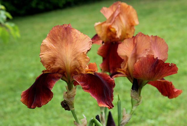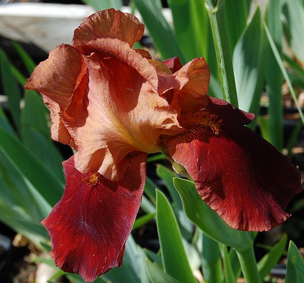 Ирис бородатый "Натчез Трейс" - это великолепное растение с красновато-коричневыми цветками, которое поразит ваш воображение своей красотой. Высота этого ириса может достигать до 85 см, что делает его заметным акцентом в вашем саду. Листья имеют изящную форму и придают растению особый шарм.