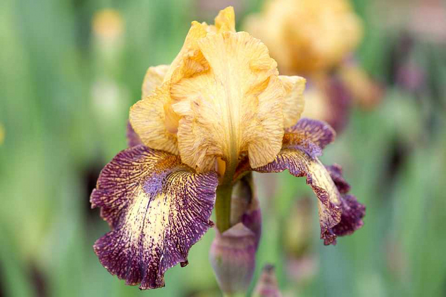 Ирис бородатый реальгар - это настоящее воплощение красоты и изысканности в вашем саду. Его ярко-желтые верхние гофрированные лепестки, соединяющиеся с малиново-палевыми нижними цветками с белой штриховкой, создают неповторимый вид, который завораживает и вдохновляет. Высота растения достигает 70-80 см, что делает его прекрасным элементом для групповых посадок. Листья ириса бородатого реальгар имеют уникальную форму, добавляя дополнительный шарм вашему саду.