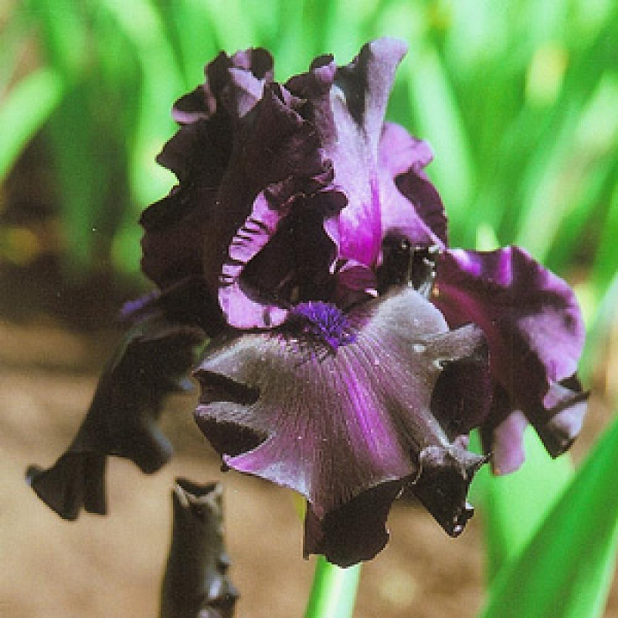 Рассада Ириса Гост Трейн (Ghost Train) станет элегантным, необычным, экстравагантным аксессуаром вашего сада. Декоративное растение достигает в высоту 90 см, отличается необычным окрасом цветков. Бутоны крупные, хорошо удерживают форму даже после срезки, долго сохраняют эстетические качества. Цвет лепестков тёмно-фиолетовый, нижние практически чёрные, гофрированные. Период цветения – июнь-июль. Семена ириса Гост Трейн можно собирать уже в начале августа. Их потом используют для получения рассады. Комфортно себя чувствует растение на суглинистых почвах, нуждается в регулярном поливе.