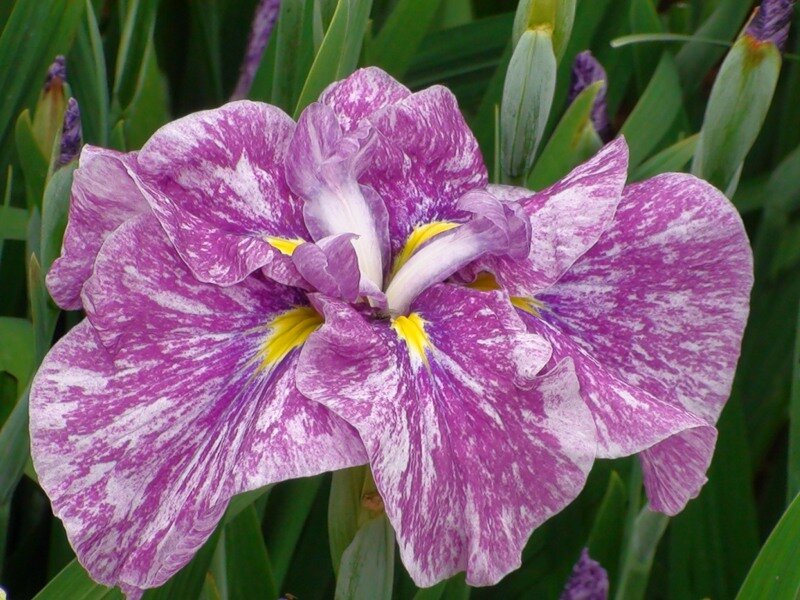 Ирис японский кийозуру - это изысканное растение, которое поразит вас своей нежной красотой. Его стебель достигает высоты до 90 см, а белые цветки смотрятся как настоящие произведения искусства. Листья имеют уникальную форму, что делает этот сорт ириса еще более привлекательным.