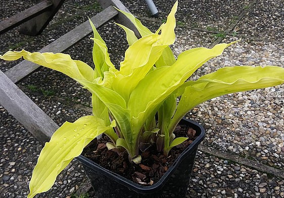 Саженцы хосты гибридной Липстик Кисс (Lipstick Kiss) выбирают ценители необычных сортов. Растение отличается оригинальным окрасом листвы — молодые побеги пастельно-лимонные с восковым напылением, позже налет смывается, приобретая насыщенно-желтый цвет. Форма не менее привлекательная — удлиненная, ланцетовидная, с гофрированным краем. На фоне красных стеблей получается необычный ансамбль. Из-за такой окраски, растение выглядит пестро и ярко во все поры года, а в периоды цветения его дополняют маленькие фиолетовые цветы. Посадите хосту отдельно или с другими культурами, она будет смотреться чудесно, независимо от окружения. Цветение в июнь-августе. Место тенистое. Почва влажная дренированная. Зона 3 (до -40ºС).