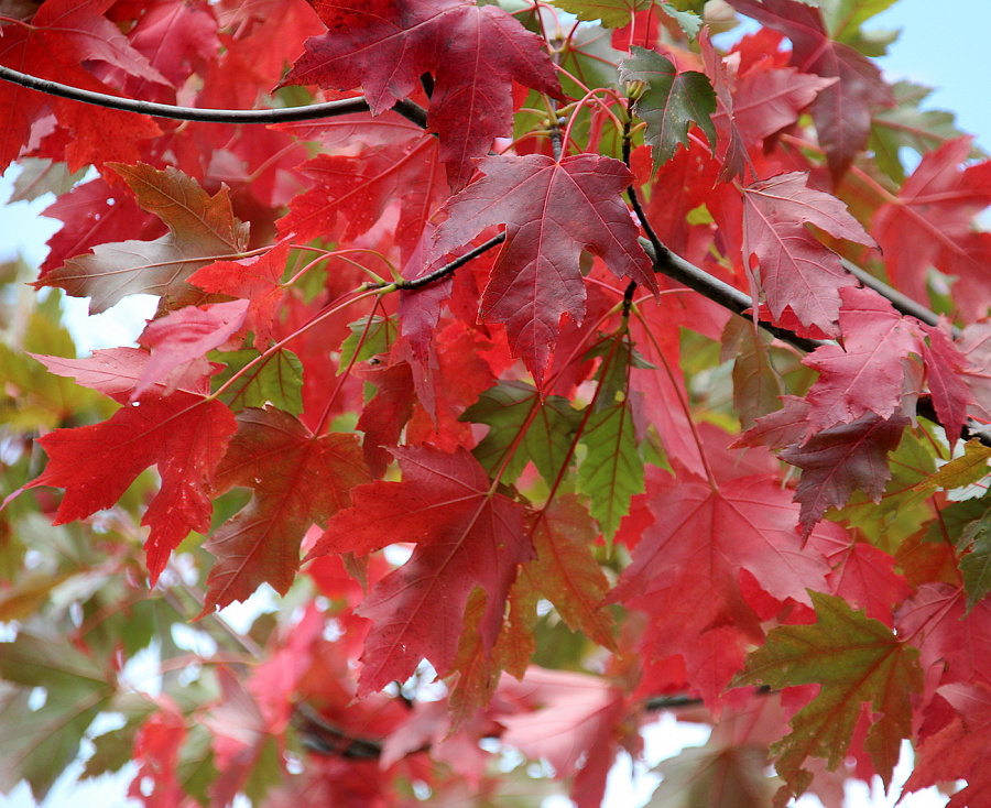 Осенняя окраска листвы : от оранжевых до ярко-красных тонов