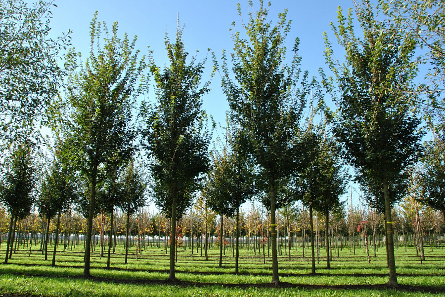 Саженцы клена полевого Квин Элизабет (Queen Elizabeth) вырастают в роскошные тенистые деревья с широкими округлыми кронами и выносливыми корневыми системами. Высота взрослых крупномеров достигает 10-12 м. Крона дерева очень широкая, иногда даже равняется его высоте. Закругленные листья летом светло-зеленые, осенью живописно желтеют. Цветет клен полевой Квин Элизабет желтыми щитковидными соцветиями. Достоинства: