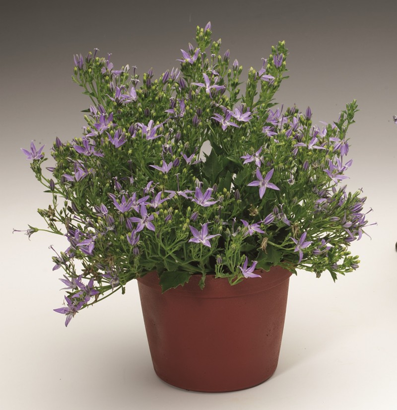 Рассада колокольчика Филигри (Filigree) обладает ползучими, приподнимающими и достаточно хрупкими стеблями. Вырастает в высоту около 15 см и образует компактный куст. Листва зеленого цвета, черенчатая и некрупная. Цветет в июле синими цветочками около 4 см. Плюсы колокольчика Филигри: