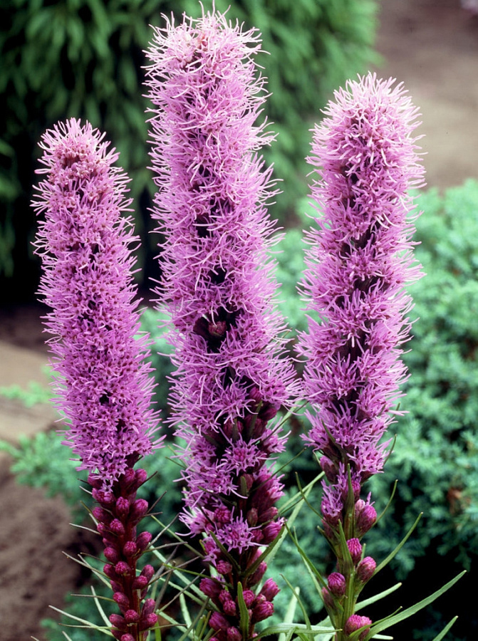Листья лиатриса колоскового флористана вайолит имеют уникальную форму, что придает растению особый шарм и привлекательность. Этот сорт обладает высокой морозостойкостью, что позволяет ему радовать вас своими цветами долгое время.
