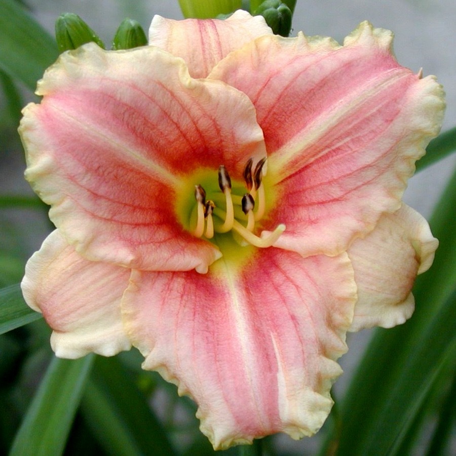 Рассада лилейника "Литл Анна Роза" (Little Anna Rosa) может расти в тени, полутени, но только на хорошо освещенном участке его цветение будет массовым и обильным. Высота цветоносов 40 см, диаметр цветочков - 8 см, Цветы нежного розового цвета имеют треугольную форму. Лепестки с волнистым краем, большим ярко-розовым пятном, по средней линии светлые. Горло салатовое. Хорошо смотрятся рассада лилейника "Литл Анна Роза", высаженная небольшими группами на фоне хвойных или лиственных деревьев и кустарников, а также рядом с камнями.
