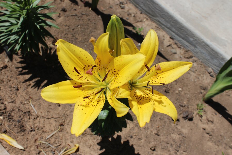 • Окраска цветка : ярко-желтый с редким темным крапом и оранжевыми пыльниками