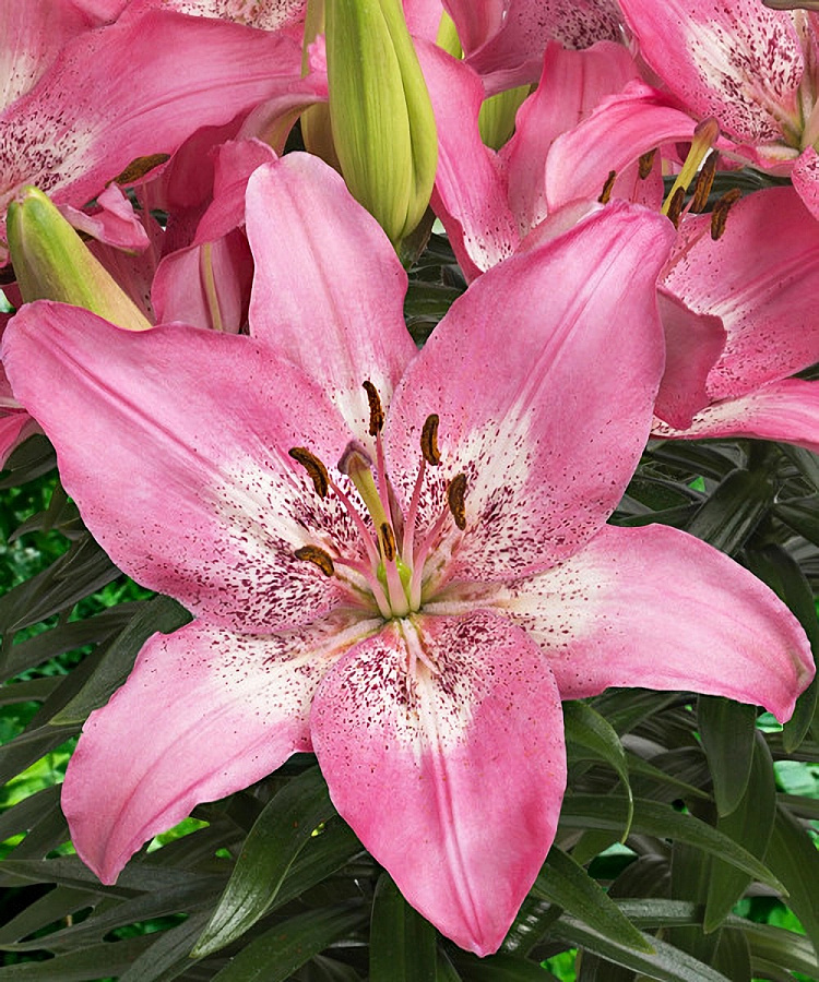 Лилия азиатская горшечная тренди никосия - это изысканное растение с карамельно-нежно-розовыми цветками, украшенными белым центром и бордовым крапом у сердца. Этот сорт лилии lilium asiatic поражает своей красотой и изяществом. Высота растения достигает 45-50 см, а размер цветка составляет 15 см. Лилия тренди никосия отличается морозостойкостью и подходит для выращивания в Московской области и большей части России (зона 4).