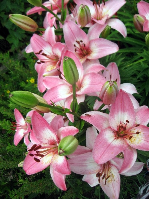 • Окраска цветка : Цветки плотной фактуры, розовые, кончики лепестков более насыщенные, центр белый с темно-розовым крапом; в горле ярко-розовые; направлены вверх