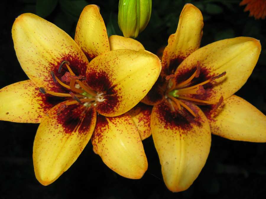 Луковицы лилии Bumblebee высаживают на солнечных местах, в удобренную, хорошо дренированную почву. Глубина посадки примерно 15-20 см. Это очень интересный и эффектный сорт, который поражает необычной расцветкой. Окрас лилии Bumblebee контрастный, цвет от насыщенно желтого плавно переходит  в ярко-бордовый. По краям нежных лепестков присутствует небольшая каемка из густых точечек. Диаметр цветка при роспуске достигает 12-15 см. Высота стебля около 110 см. Он прочный, покрыт глянцевыми темно-зелеными листьями. Аромат у сорта очень яркий, как и расцветка.