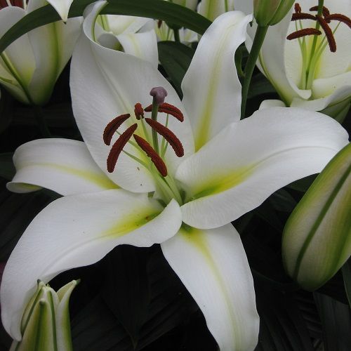 Высота стебля достигает 80-100 см, по всей высоте стебель покрыт густой темно-зеленой листвой. Лилия Cocossa идеально подходит для выращивания на срезку, а в групповых посадках ей нет равных. Идеальной формы цветы с белоснежными лепестками отлично сочетаются с яркими розами и другими растениями.