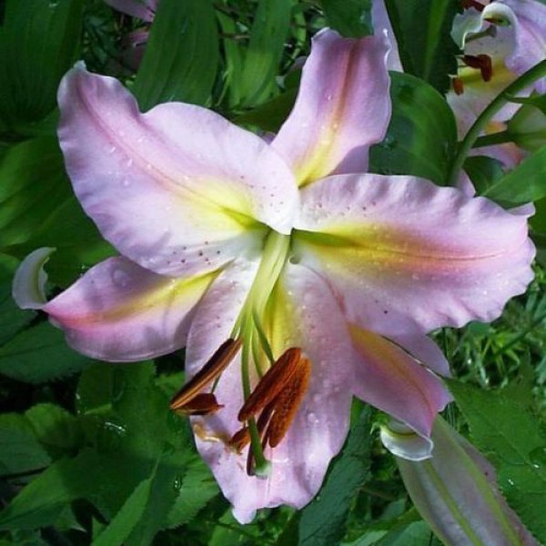 Лилия восточная колор эссенс - это великолепное растение с изысканными цветками, которые поражают своей красотой и неповторимым ароматом. Высота этого растения может достигать до 110 см, а размер цветка до 20 см, что делает его настоящим украшением любого сада или огорода. Листья лилии имеют зеленую окраску и прекрасно сочетаются с цветами.