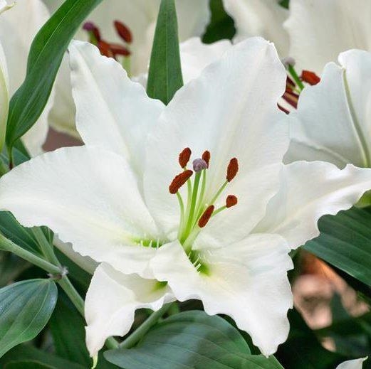 Лилия восточная Monsella - это изысканное растение с белыми цветками и волнистыми краями, которое поражает своей красотой и изяществом. Ее стебель достигает высоты до 95 см, а размер цветка составляет 15-17 см. Листья имеют зеленую летнюю окраску и интересную форму. Это растение предпочитает солнечные и полутенистые места для посадки, идеально подходит для газонов, групповых посадок и миксбордеров.