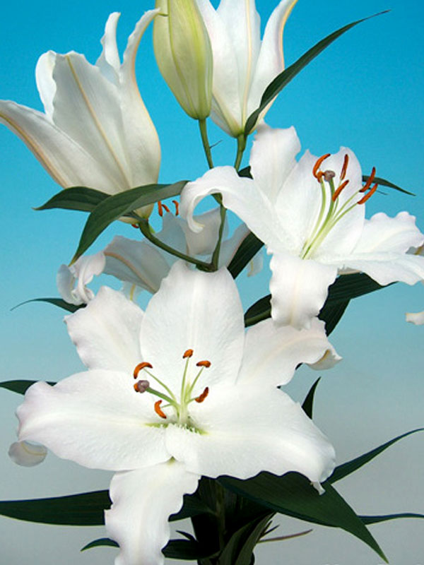 Луковицы лилии восточной Нова Зембла (Lilium hybrid oriental Nova Zembla) — это изысканный цветок для клумб и букетов. Он распускается во второй половине лета, и на высоких цветоносах (до 100 см) одновременно появляется до 8 цветов, до 20 см в диаметре каждый. Их лепестки классического белого цвета, очень легкие и ажурные, у центра присутствует незначительный оттенок зеленого. Лилия Нова Зембла незаменима при создании букетов. Эти цветы могут быть как центральной деталью композиции, так и оттенять другие, слишком яркие расцветки. Уход за этим сортом несложен: растение адаптировано к условиям умеренного климата и без проблем переносит летние и зимние перепады температур в открытом грунте.