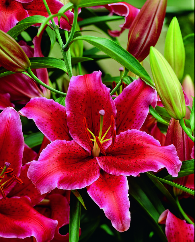Лилия восточная Rio Negro (Рио Негро) – растение высотой 100-110 см. Цветки ароматные, крупные, тёмно-розовые с крапом, край лепестков волнистый. Диаметр цветка достигает 20 см. Один стебель образует до 5 бутонов. Период цветения: июль-август. Посадку луковиц производят весной (после окончания заморозков) или ранней осенью. Предпочитают хорошо дренированную, рыхлую, богатую минеральными веществами почву. Для посадки необходимо выбрать теплое, защищенное от холодных ветров солнечное место. Необходим умеренный полив.