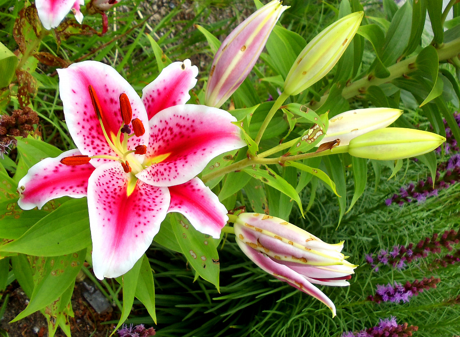 • Окраска цветка : крупный, насыщенно-розовый с широкой белой каймой, малиновыми мазками от центра и частым крапом
