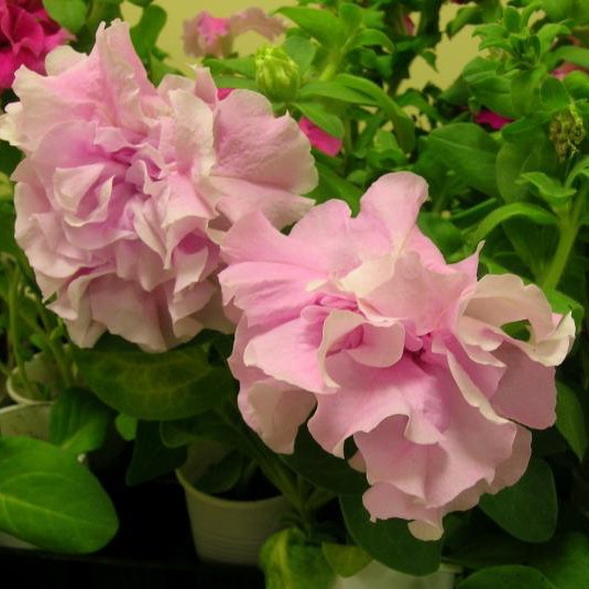 Петуния махровая Double Cascade Soft Pink - это изысканное растение с нежными розовыми цветками, которые напоминают пышные шелковые платья. Ее стебли прочные и устойчивые, достигают высоты до 35 см, а диаметр цветка может достигать 10 см. Листья петунии мелкие, зеленые, создают прекрасный контраст с яркими цветами.