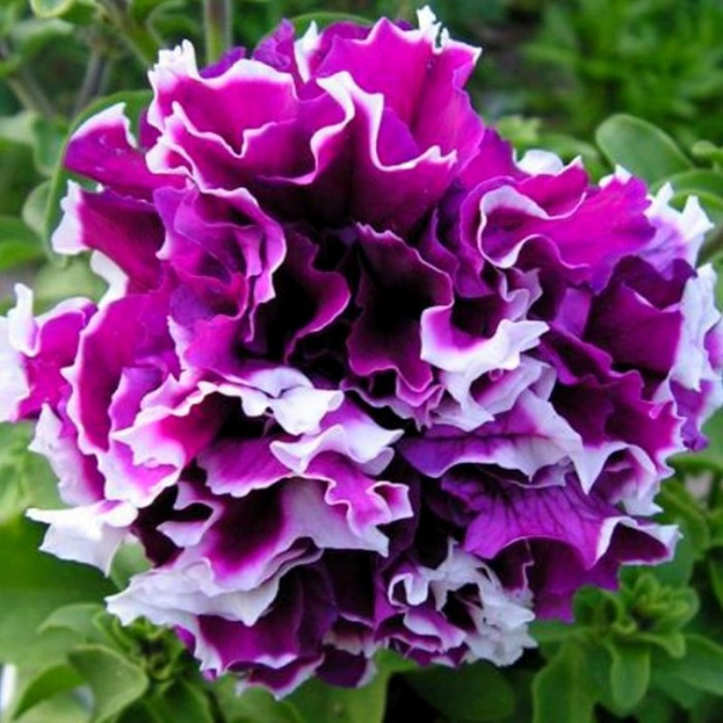 Петуния махровая Pirouette Purple - это волшебное растение, которое поразит вас своей красотой и изысканностью. Ее стебель прочный и устойчивый, достигает высоты до 35 см, а диаметр цветка может достигать 10 см. Листья петунии махровой Pirouette Purple имеют ярко-зеленый оттенок, что создает прекрасный контраст с фиолетово-белыми цветками.