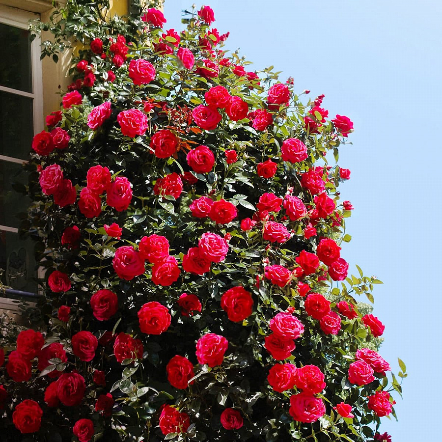 Саженцы розы плетистой Симпатия (Sympathie) широко используется садоводами для декорирования зданий. В высоту куст может достигать 300 см и несколько раз за лето цветёт обильными вишнёво-красными ароматными цветами. В цветке может быть до 30 лепестков. В 1999 г. получила звание «Лучшая Плетистая Роза» на канадском конкурсе роз. При посадке крупномера надо выбирать солнечные места. На зиму требует укрытия. Укрывной материал должен хорошо пропускать воздух и не намокать, важно сохранять воздушное пространство над растением, чтобы оно не выпревало. Для розы Sympathie нужна почва, богатая перегноем, её готовят за месяц до посадки.