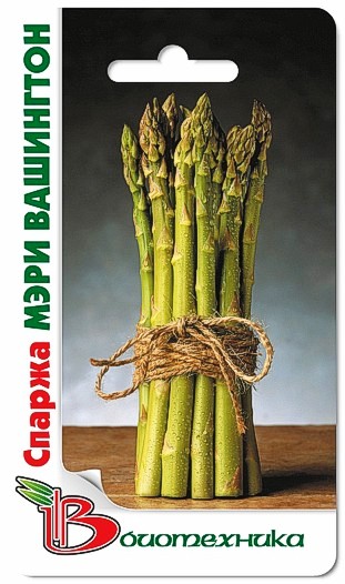Семена спаражи "Мэри Вашингтон" (Маrу Vashington) – это многолетнее деликатесное растение. Сорт среднеранний, образует крупные, толстые побеги с различными оттенками от красного цвета до фиолетового, на свету может появиться зеленый тон. Первые ростки появляются спустя месяц после посева. Срезать культуру можно, когда она достигнет в высоту около 40-50 см. Побеги используют в пищу в качестве питательных гарниров. В тушеном или поджаренном виде они отличаются великолепным вкусом. Перед наступлением заморозков, в октябре, надземные побеги спаржи срезают на 10 см выше поверхности почвы.