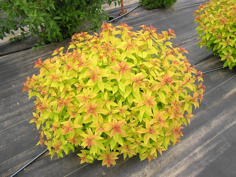 Саженцы Спиреи японской Мерло Стар (Merlo Star, Spiraea japonica) считаются новинкой французских селекционеров. Это компактный вид, его высота не превышает 80 сантиметров. Во время роста формируется пышная крона диаметром до 60 сантиметров. Сорт спиреи Мерло Стар отличается заостренно-овальными золотистыми листьями летом, красно-оранжевого оттенка весной и оранжевого-красного цвета осенью. Цветет кустарник все лето: с июня по август мелкими розовыми цветами, которые собраны в щитковидные зонтики. Спирея Мерло Стар хорошо растет на открытом солнечном месте, также терпима к полутени. Если ее высадить в тень, то не будет цвести. Неприхотлива к почве. Отличается зимостойкостью.