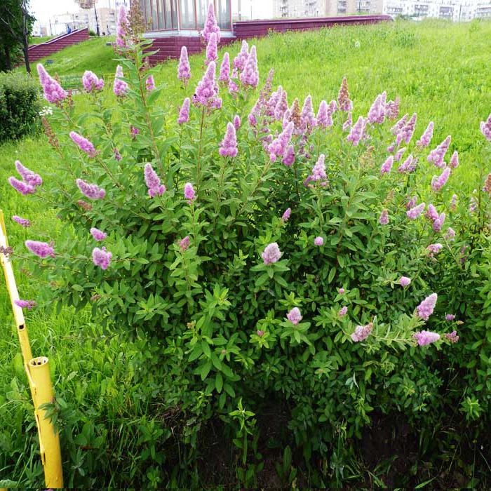 Саженцы Спиреи Дугласа (Spiraea douglasii) – лиственный пряморастущий кустарник, высотой до 200 сантиметров. Сорт отличается быстрым ростом и разрастанием.
