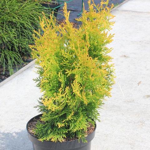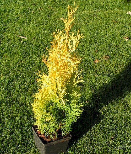 Саженцы туи Янтарь (Jantar) станут отличным приобретением для любого ландшафта. Они вырастают в красивое дерево конической формы высотой до 2 метров. Его хвоя круглый год шикарного золотисто-желтого цвета. Туя Янтарь прекрасно подходит для городского озеленения, в групповые или одиночные посадки для создания разных живых композиций. Крупномер туи нетребователенк условиям произрастания, морозо- и болезнеустойчив. Прирост кроны медленный – до 20 сантиметров в год. При посадке требуются: торфяные или глинистые почвы с хорошими дренажными свойствами, лучше солнечные участки, регулярный полив.