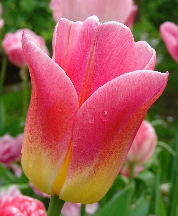 Окраска цветка : кремово-желтый с розовой каймой, по мере цветения кайма становится шире