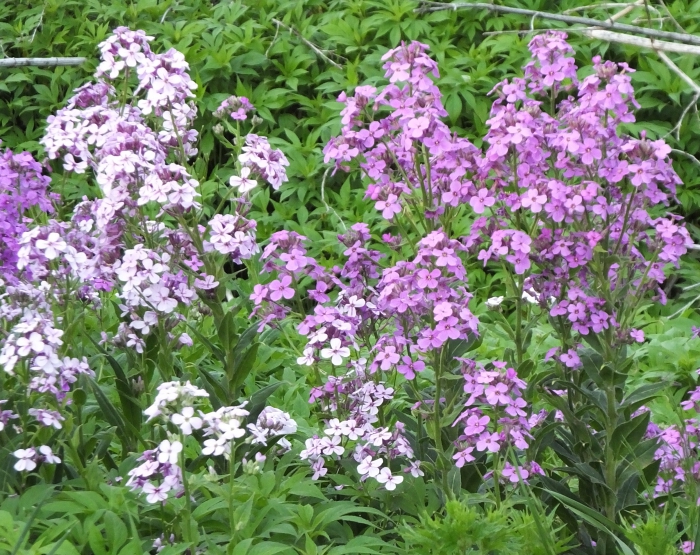 • фиолетовые. Рассада вечерницы матроны используется для оформления бордюров вдоль дорожек, создания высоких цветочных групп и для выращивания экземпляров на срезку. Растения можно также размещать возле мест отдыха, где они поспособствуют созданию благоприятной атмосферы. Для посадки семян вечерницы матроны подходит слабощелочная почва. Период цветения продолжается с мая до августа на второй год посадки.