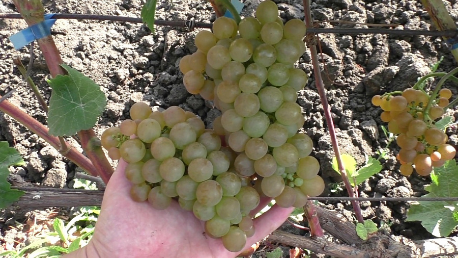 • заготовки изюма. Грозди белого винограда небольшого размера. Плоды зеленовато-белые с сочной, вкусной мякотью и тонкой, но прочной кожицей. Крупномер Платовский отлично себя чувствует практически на любой почве, но обильнее всего плодоносит на глинисто-известковых грунтах.